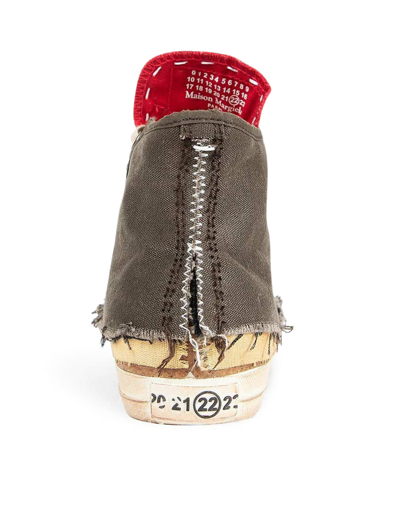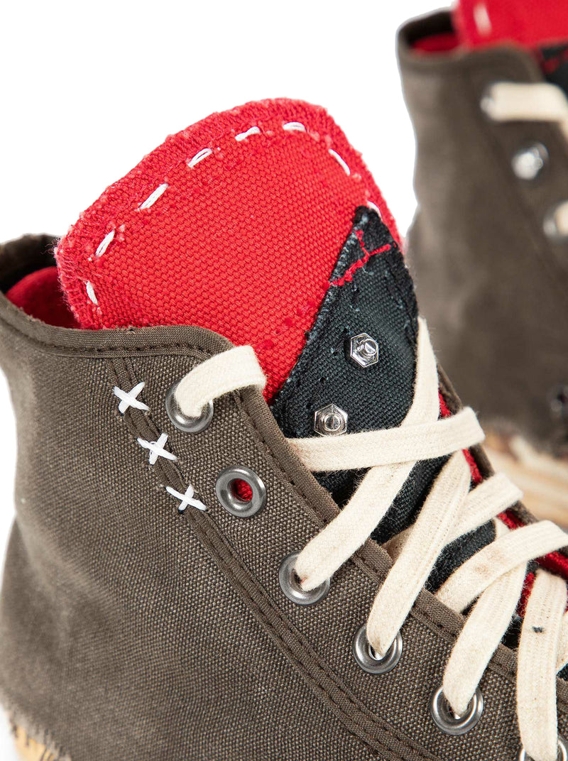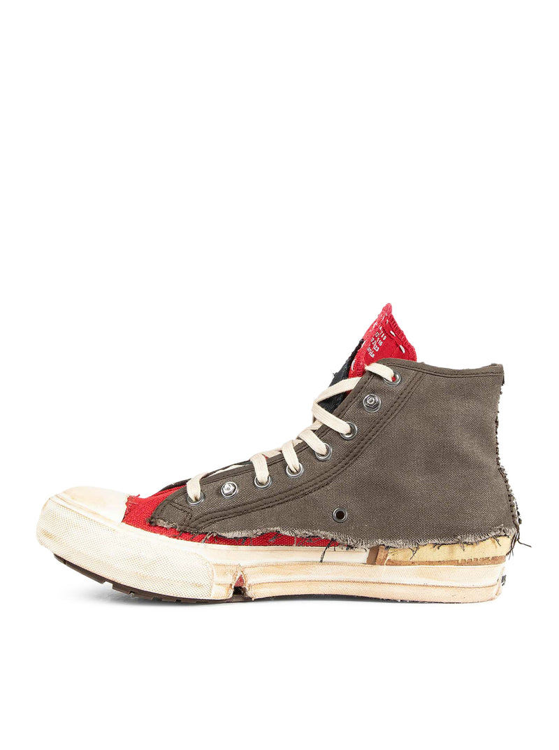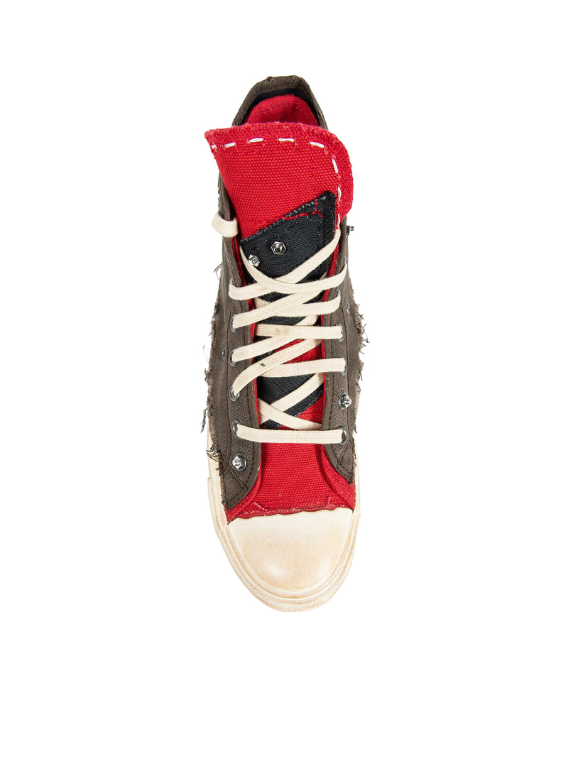 "LOVE TO DEATH" HIGH-TOP CANVAS SNEAKERS WITH DESTRUCTURED DETAILS