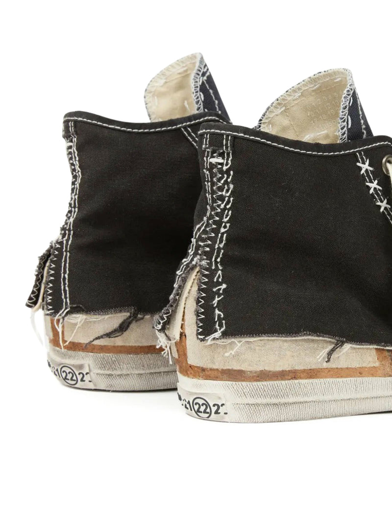 "LOVE TO DEATH" HIGH-TOP CANVAS SNEAKERS WITH DESTRUCTURED DETAILS